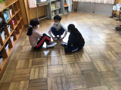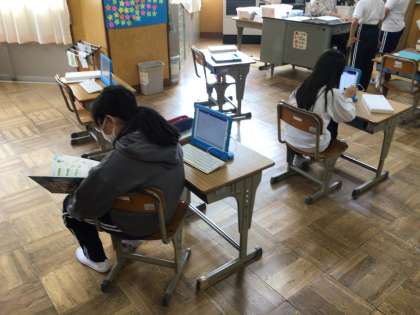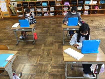 総合学習の発表会の原稿を友だちと相談したり、タブレットに入力したりしました。