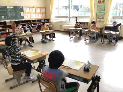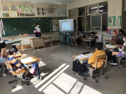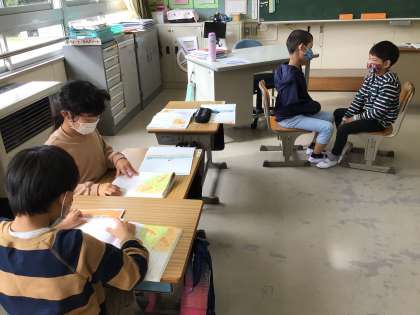 2年生は道徳の授業で、自分の考えをもち、学習形態を変えながら友達と交流する学習をしました。教材文の「お母さん、ありがとう」に続く言葉を考え、キツネの思いに迫ります。短い時間でも、友達について伝えたいという思い、友達の考えから学ぼうとする姿がとても印象に残りました。成長が著しい2年生です。