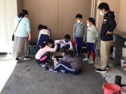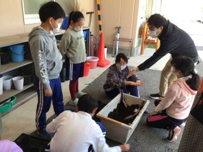 1時間目、早速、黒ポットに土を入れ、沈んだドングリの選別をする4年生の子供達でした。自ら動き出す子供達の姿に、環境について学んできた学習の確かさを感じました。次はどう動き出すかな。
