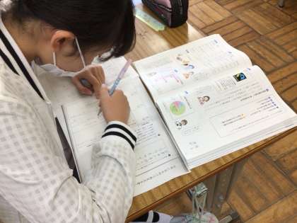 6年生は教科書の教材文をもとに、意見文を書く学習をしていました。構成メモに序論、本論、結論を書き込みます。自分の考えをもつことの楽しさを感じてほしいと思います。