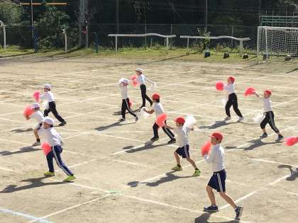 久しぶりに運動場で、運動会のダンスの練習をしました。教室で練習するより気持ちよく練習できました。