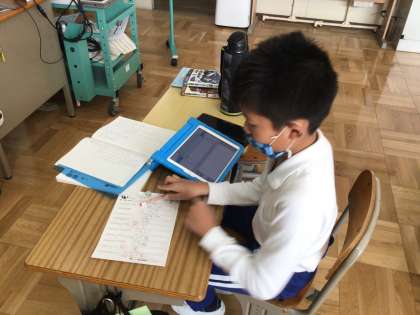 国語の授業の最初に、いつも漢字の練習と音読を行います。日々の積み重ねが大切です。