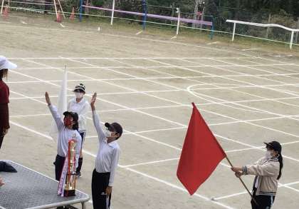 紅白の応援旗は、公務手さんがほつれを繕い、アイロンをかけてくださいました。下支えの力に感謝。