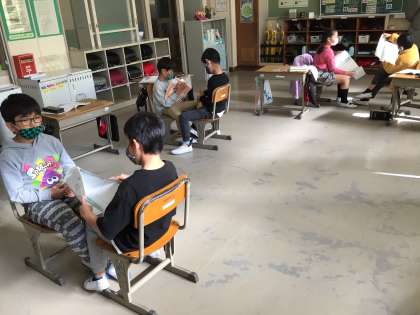 道徳科では、話し合いを通して、自分の考えをはっきりさせたり、友達の考えから新しい見方を学んだりします。2年生は、交通事故に遭いそうになった主人公の話を通して、きまりについて、考えを深めました。家族を悲しませるという発言に、どの子もうなづき、子供たちの心の温かさが感じられました。最後は、自分へのメッセージを友達に伝えて学習のまとめをしました。