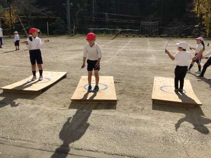 明日から縄跳び練習が12/8まであります。なかよしタイムに4年生の子が今から練習に行きます。と誘ってくれました。二重跳びを練習するそうです。運動場では、公務手さん手作りのジャンプ台で子供たちが元気よく練習していました。どんどん鍛えられるね。