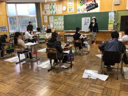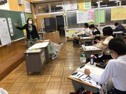 6年生の教室では、筆を45度で入れることや最後はまっすぐの線上に返すことを確かめてくださいました。凛とした雰囲気の中で、丁寧なご指導が進んでいます。
