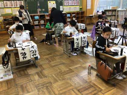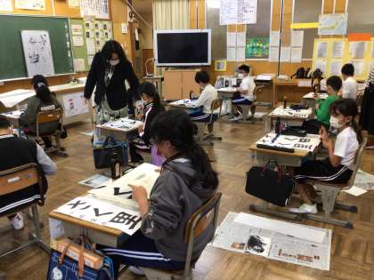 4年生も集中して取り組みました。里という文字を形よく書くために、2画目は短くとアドバイスをいただきましたね。