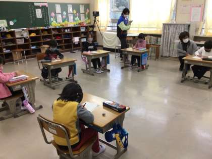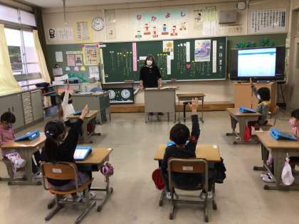 デジタル教科書の動画で、どんどん自慢の山が小さくなっていく様子を見て、ああ…といったつぶやきが聞かれました。残念な気持ちになった子供たちに、先生が、誰がそういう気持ちになっているのかなと尋ねると、村のみんなだけでなく、みんな、という意見が聞かれました。一人一人の少しぐらいの気持ちが、みんなの残念や悲しいに繋がることに気づいた子供たちでした。