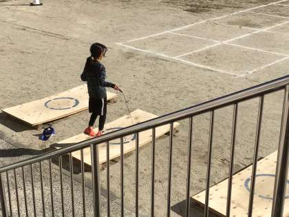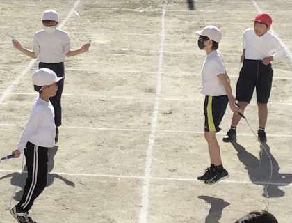 なわとび練習がスタートしてこれで2週間が経ちました。あと1週間後に、なわとび大会があります。放課の短い時間を惜しみながら、練習する姿がありました。