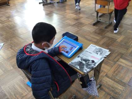 国語で「パラリンピックがめざすもの」について調べ、タブレットを使ってまとめました。