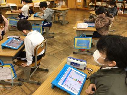 4年生は、総合的な学習で、持続可能な社会について考える学習に取り組んでいます。今日はあらためて、最も優先して考えたい17のゴールについて、話し合いました。それぞれが学習タブレットに、上から順番に17の国際目標を並べて、理由を伝え合いました。自分たちは何ができるのかな。