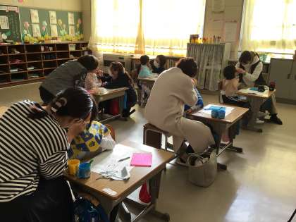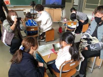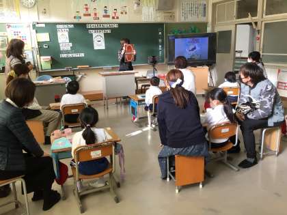 なわとび大会の前に、1年生は歯みがき教室を行いました。6歳臼歯を鏡で確かめたり、磨き残しを染め出しで見つけたりしました。おうちの人の前で、ああんと大きな口を開けて、見てもらっている1年生の子供たち。ちょっぴり嬉しそうでした。おうちでも、学校でも、虫歯から6歳臼歯の6ちゃんを守っていこうね。