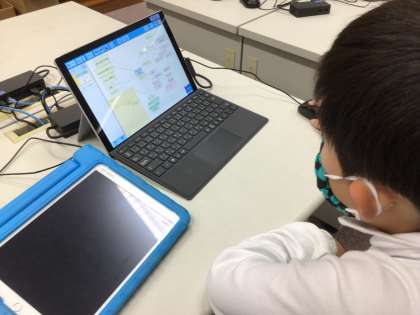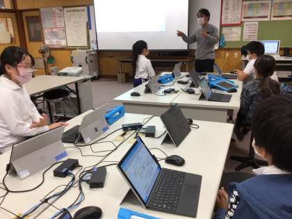 4年生は総合的な学習で取り組んでいSDGsについて、自分たちのできることを話し合っていました。みんなで出し合った意見を思考ツールにまとめ、種類ごとに活動を仕分けしました。企画、広報…なんて、ネーミングも飛び出し、まるで会社のようでした。勢いがあります。