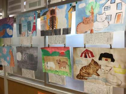 読書感想画が完成しましたね。心に残った場面を切り取って、それぞれの表現で絵に表しました。