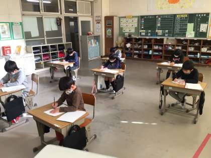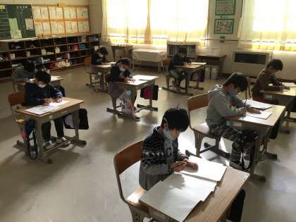 書き初めで書く硬筆の練習をしました。長い文なので、集中力を保つのが大変でしたが、がんばって書きました。