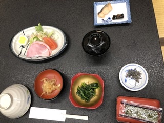 朝は和食です。一睡もできなかったと言っている子もいました。少し眠そう。