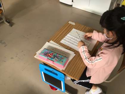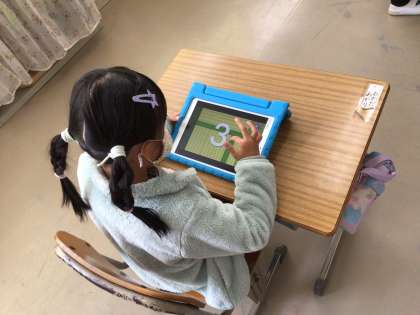 国語の時間に書き初めの練習をしたり、タブレットを使ってひらがなの練習をしました。