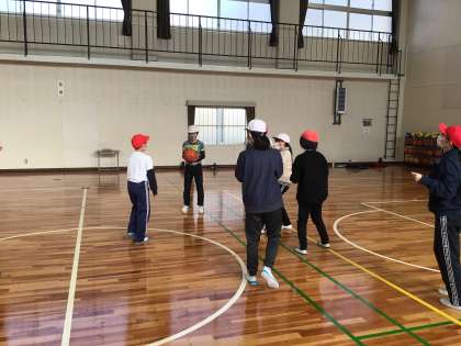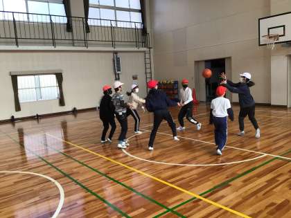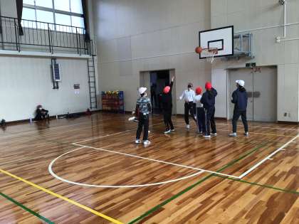 体育の時間にバスケットの試合をしました。パスがなかなか通らなくて難しかったです。