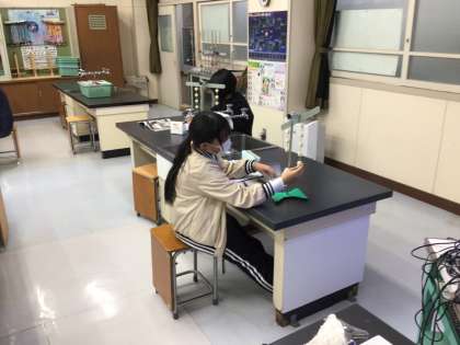 理科の授業で天秤の学習をしました。天秤の釣り合いの法則を実験から見つけました。