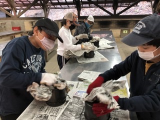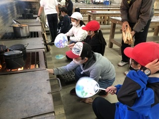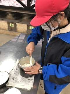 起こした火を使って、飯盒炊飯。火が消えそうになりながらも、一人一合のご飯が炊き上がりました。
