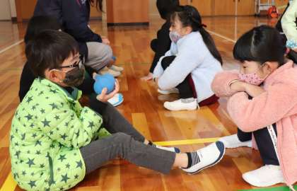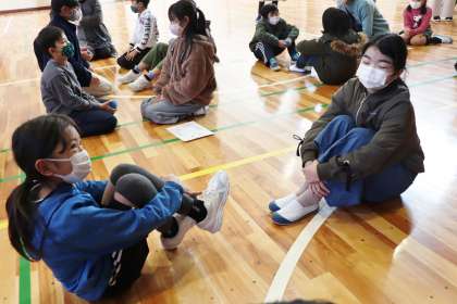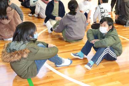 まさしく会話のキャッチボール。玉入れの玉を何回も往復させることができましたね。時々、プロジェクターの聴き名人のこつを見ながら話す子供達でした。