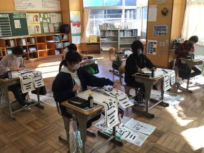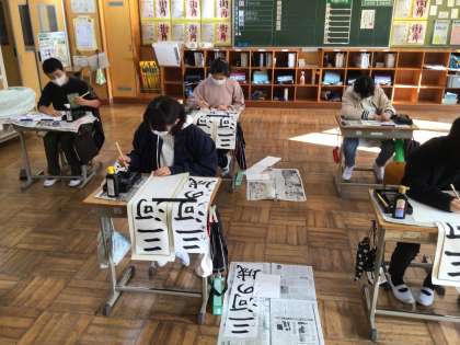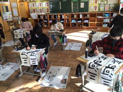 みんな集中して、書き初めに取り組みました。
