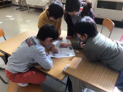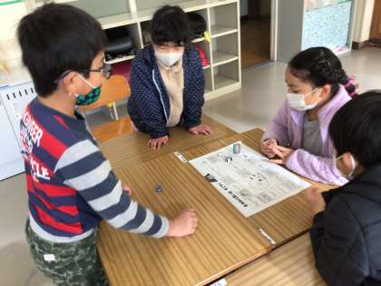 2年生は、冬休みの思い出をすごろくで振り返っていました。なかなかゴールできなかったりして、大盛り上がりでした。