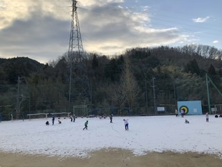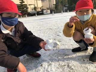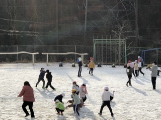 朝から思いがけず、雪が積もった運動場に低学年の子供達が出てきました。とってもうれしそう。