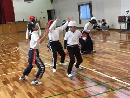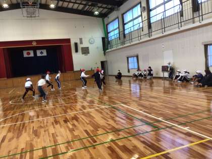 5.6年生の子供たちは、年間を通じて、タグラグビーを外部講師の先生に指導していただいています。いいラインを作って、得点がゲットできるようになりましたね。