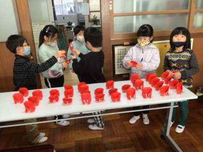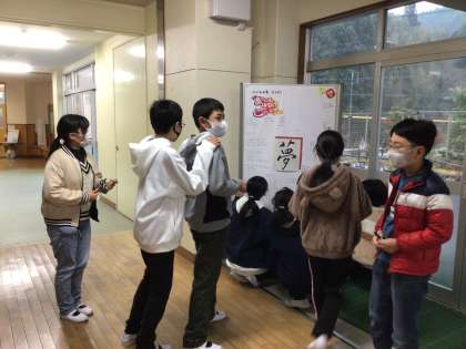 冬休み前集会で全校のみんなに夢を教えてねと伝えました。早速ボードに書いてくれた子に、だるまを一つずつ渡しました。夢を言葉にして、好きなことを自分の自信に繋げていって欲しいなあと思います。