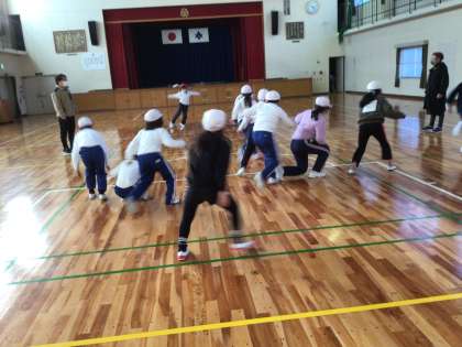 寒い時期はどうしても外遊びを控えてしまいます。体育の時間に、体ならしの運動として、鬼ごっこをする3、4年生でした。体育館中にうれしそうな声が響きました。鬼ごっこは、瞬発力や敏捷性が必要ですね。