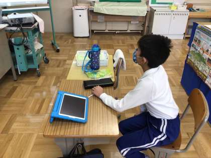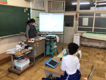 総合学習の「ふるさとウォーク」の事前指導を受けました。マップを使ってコースを確かめました。