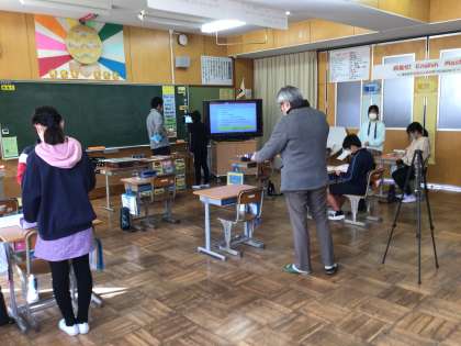 学校では年間2回、薬剤師さんによる教室環境等の検査を行っています。教室内の温度、湿度、照度、黒板の色彩、二酸化炭素濃度等を調べていただいています。学習に適した環境かどうかを確認して、改善を進めていきます。