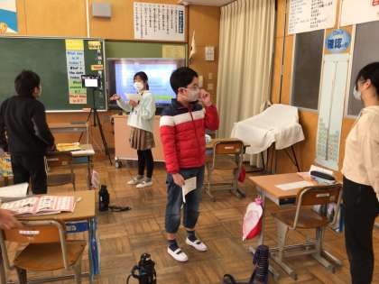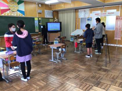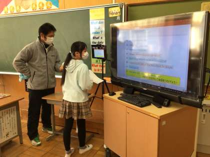 5年生の外国語では、今日のキーセンテンスに合わせて、会話を繰り返しながら学習をしていました。