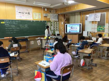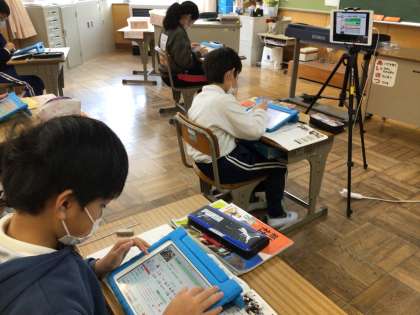 4年生は、社会科の授業で愛知県の市町村について調べていました。市のホームページを見ると、それぞれの市の特徴がよく分かります。豊橋市は、外国から来た人たちが多く住んでいるので、いろんな言語で広報が書かれていましたね。気付きによって、新たな問いが生まれます。さっそく豊田市と比較し始める子も見られました。どんどん、それぞれの特徴が明らかになっていきますね。