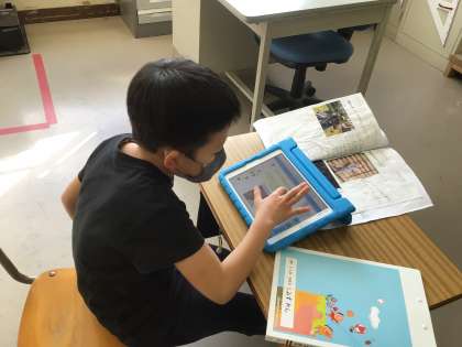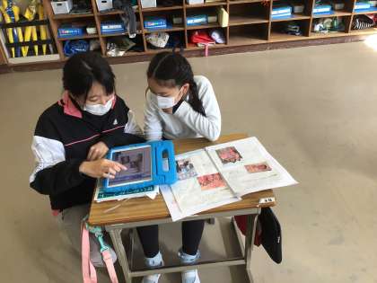 生活科で「じぶんはっけんブック」をタブレットなどを使って作りました。