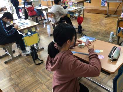 5年生は、実際に円を転がしながら、直径別に円周を読み取りました。数値を表に記入することで、見えてくる決まりがあったかな。