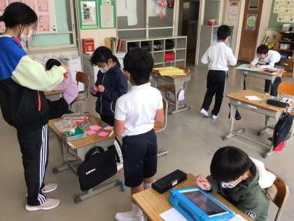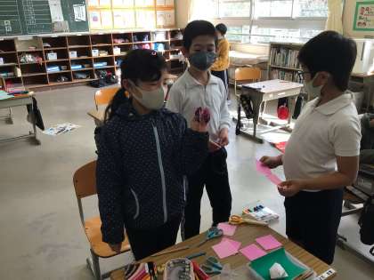 2年生は発表会の準備をしていました。プログラムを作成する子、得意の折り紙で飾りを折る子、タブレットで台本を書く子、とってもいいね!それぞれが自分のよさを生かしているね。出来上がりが楽しみです。
