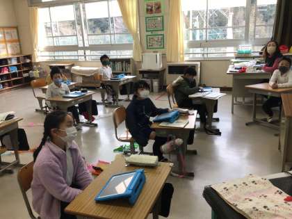 2年生の子供達は、作った台本をもとにプレゼンの準備の最中でした。順番にタブレット上に作成した資料を示して発表していきます。友達の発表から自分の発表のやり方を振り返ることで、さらに、よく伝わる発表になっていくでしょうね。