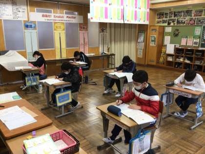 書写の時間にアルファベットと手紙の宛名などの書き方を練習しました。