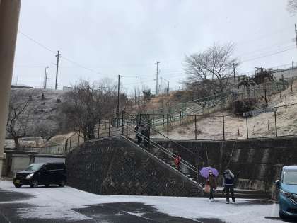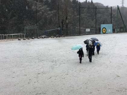 今朝は天気予報がぴたりと当たり、8時前あたりから雪がしんしんと降ってきました。雪が降っていない時間帯に家を出た子達のランドセルには、うっすらと雪が積もっていました。私の黒い服は、結晶を見るのにぴったりで、結晶のとげとげの部分を子供達に見てもらえて、ラッキーでした。次は、学習タブレットのルーペで拡大して見せてあげたいと思っていますが、三寒四温、もう降らないかもしれませんね。下校には、すっかり暖かい陽気になっていました。