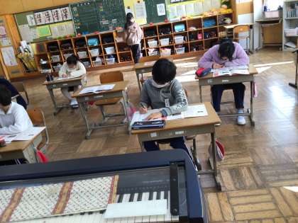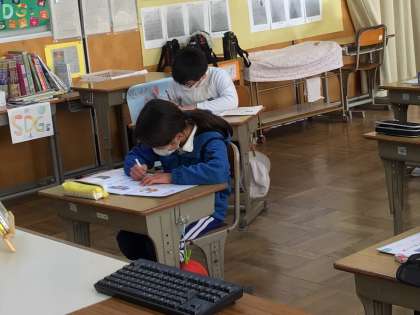 書写の時間にリーフレットの書き方の練習をしました。