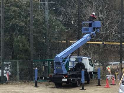 今日は園芸業者さんが、樹木の伐採に来ました。以前、樹木医に確認していただいた、危険木の伐採です。台風並みの強風が来た場合、落下や倒木の恐れがあるためです。安全に過ごすことができるように環境整備をしています。