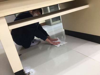 下学年の子達が6年生のお祝いの準備をしている間、6年生はというと、愛校活動に励んでいました。今日は、家庭科室、理科室のワックスがけです。すみずみまで水拭きで汚れを落として、ワックスを塗ります。ぴかぴかの仕上がりに本人達も満足そう。みんな、きっとびっくりするね。卒業プロジェクト、確実に進んでいます。ありがとう!