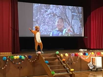 5年生の紹介ナレーションで、6年生の登場です。思い思いの衣裳で、会場を盛り上げます。さすが6年生!