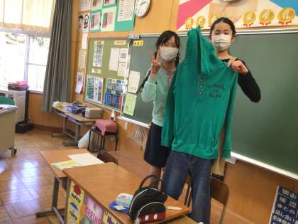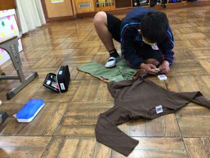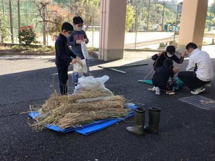 総合的な学習として、これまで米を中心に学習を進めてきた5年生。来年の5年生のために、かかしを作っているようです。家庭科で学んだ玉結びや二本どりも使って、工夫しながら頑張る姿がありました。
