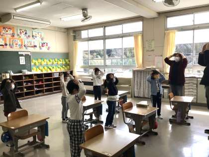動物の名前の歌を使った輪唱では、担任の先生チームとブライアン先生チームと分かれ、最後まで歌い切りました。思わず拍手が起こりました。good job!