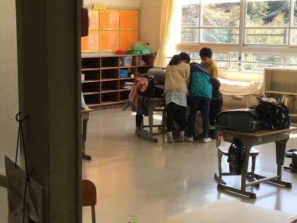 みんなで相談して取り組んでますね。今年度、最後の1時間の様子です。