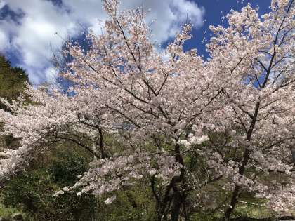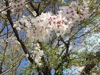 日曜日の雨であやぶまれましたが、校庭の桜が満開です。