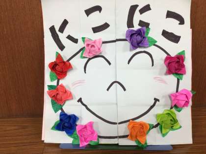 咲かせたいのは、笑顔の花。にこにこの笑顔であいさつをすると、みんなが幸せになることも伝えました。これから先生や友達と一緒に、あいさつ以外でも、笑顔の花をたくさん咲かせてほしいと思っています。